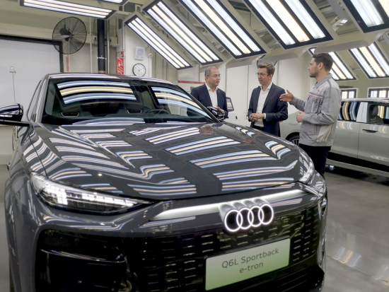 楊海介紹,在各級(jí)政府和股東的支持下,僅用了15個(gè)月,就在一片荒地上建起了智能生態(tài)工廠!霸谥悄苌a(chǎn)方面,拿焊接工藝來(lái)說(shuō),我們實(shí)現(xiàn)了100%自動(dòng)化率,整車(chē)4000多個(gè)焊點(diǎn)全是由機(jī)器人完成的。在生態(tài)可持續(xù)方面,我們通過(guò)100%規(guī)劃和使用綠色能源、生產(chǎn)廢棄物100%回收、廢水100%循環(huán)使用等多項(xiàng)措施,打造了奧迪在中國(guó)首個(gè)PPE純電動(dòng)車(chē)型和首家投產(chǎn)即實(shí)現(xiàn)‘碳中和’的生產(chǎn)基地!