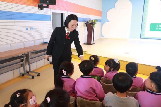 活動中,樸宣蓉結(jié)合學齡前兒童認知特點,將法治安全知識融入動畫展示與情景模擬。圍繞校園安全、交通安全、食品安全等主題,通過播放安全教育短片、情景模擬互動等方式,引導孩子們在輕松氛圍中認識潛在風險,學習自我保護方法。