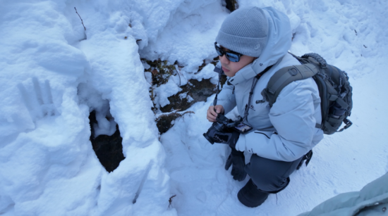 深入雪谷腹地,采風(fēng)團(tuán)一行涉入尚未冰封的溪水,手扶古木,沿溪而行。“這種體驗(yàn)太美好了,在滿是積雪的森林深處行進(jìn),感覺太奇妙了!泵绹W(wǎng)絡(luò)博主于中美驚嘆道。