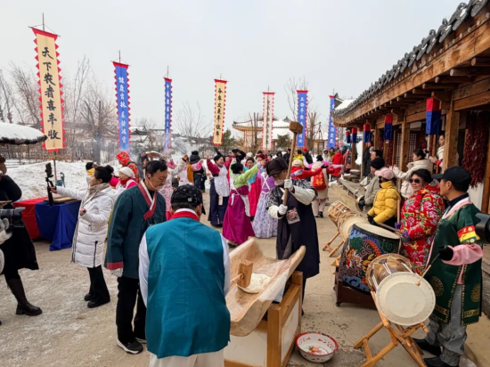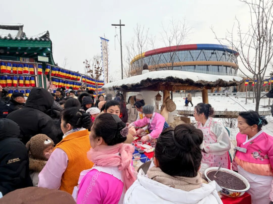 冰雪嘉年華人氣旺,州市聯(lián)動(dòng)塑精品。敦化市人民政府和延邊州文廣旅局共同打造“非遺賀新春·多彩延邊韻”暨敦化市“歡喜過(guò)大年·傳承啟新篇”首屆冰雪嘉年華活動(dòng),構(gòu)建州市兩級(jí)高效統(tǒng)籌、協(xié)同聯(lián)動(dòng)的工作機(jī)制;顒(dòng)于2月10日在中成朝鮮族生態(tài)村啟幕,現(xiàn)場(chǎng)規(guī)劃布局了非遺展示區(qū)、民俗體驗(yàn)區(qū)、冰雪運(yùn)動(dòng)區(qū)、特色美食區(qū)、年味市集區(qū)五大功能板塊,累計(jì)推出非遺展演、民俗互動(dòng)、冰雪賽事等各類(lèi)特色活動(dòng)22場(chǎng),邀請(qǐng)敦化市各級(jí)非遺傳承人現(xiàn)場(chǎng)開(kāi)展技藝展演,布設(shè)65個(gè)沉浸式體驗(yàn)點(diǎn)位,900余名演職人員、工作人員及志愿者全程提供保障服務(wù)。