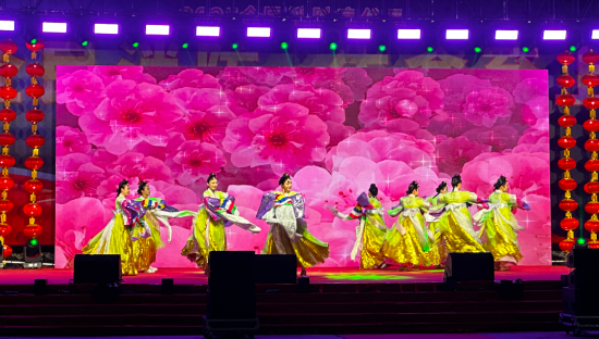 隨后,“紅太陽(yáng)照邊疆 金達(dá)萊映山!贝笮腿罕娢乃囃頃(huì)接棒登場(chǎng)。來自各行各業(yè)的表演者輪番登臺(tái),用嘹亮的歌聲、優(yōu)美的舞蹈,生動(dòng)展現(xiàn)和龍獨(dú)特的地域風(fēng)情,充分彰顯全市群眾昂揚(yáng)向上、積極奮進(jìn)的精神風(fēng)貌,現(xiàn)場(chǎng)掌聲、喝彩聲此起彼伏,暖意與歡樂交織。