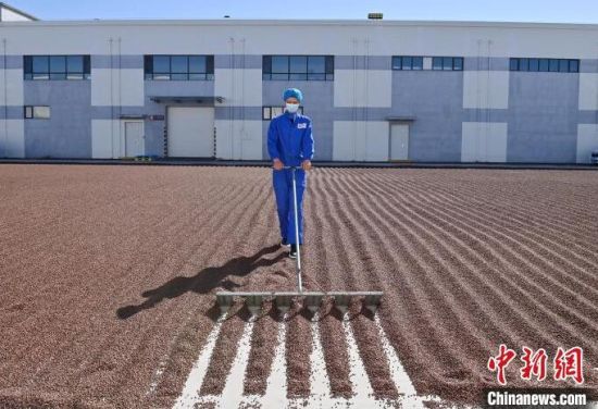 9月13日,梅河口松子加工企業(yè)工人在晾曬松子!≈行律缬浾 張瑤 攝