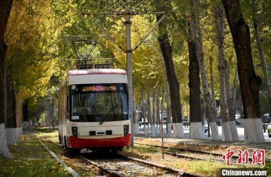 2023年10月23日,吉林長(zhǎng)春,正在運(yùn)行的54路有軌電車。作為時(shí)代的符號(hào),它在不少東北題材的影視作品中都有出現(xiàn)。(資料圖)中新社記者 張瑤 攝