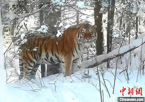 12月3日,長白山保護(hù)區(qū)工作人員發(fā)現(xiàn)的野生東北虎,拍攝時(shí)與老虎距離不到10米!(吉林省林業(yè)和草原局供圖)