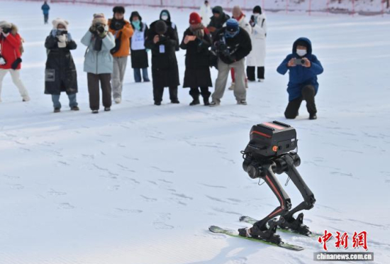 1月10日,吉林長(zhǎng)春,一機(jī)器人在滑雪!埇 攝