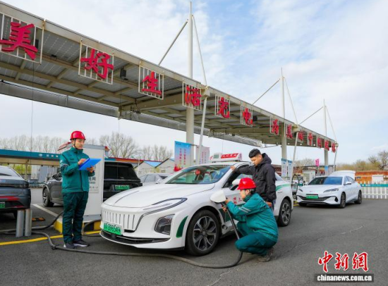 一新能源汽車在長春市蔚山路充換電站充電。(資料圖)(國網吉林省電力有限公司供圖)