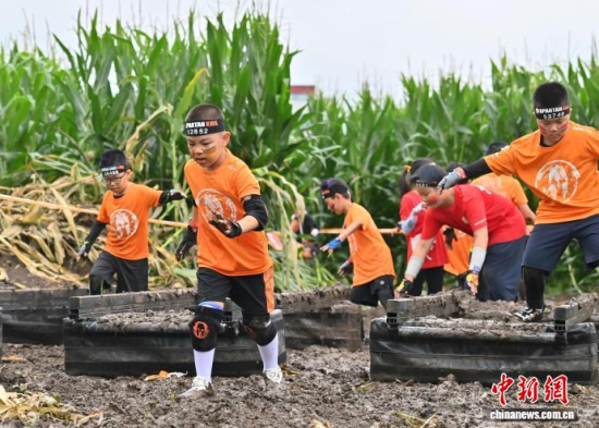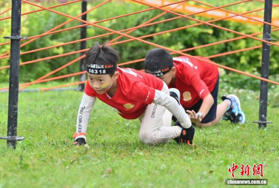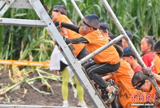 7月25日,2025斯巴達勇士兒童賽長春站在卡倫湖力旺實驗學(xué)校開賽。當(dāng)天大雨傾盆,參賽的小選手們熱情不減,紛紛化身“小勇士”,在泥濘的賽道上勇闖障礙、攀爬坡道。圖為參加斯巴達勇士兒童賽的選手在比賽中。中新社記者 張瑤 攝