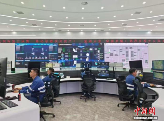 國家電投大安風光制綠氫合成氨一體化示范項目的中控室。