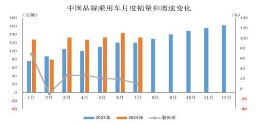 2024年1-7月,中國品牌乘用車共銷售874.2萬輛,同比增長21.6%,占乘用車銷售總量的62.6%,銷量占有率比上年同期提升8.8個(gè)百分點(diǎn)。(完)
