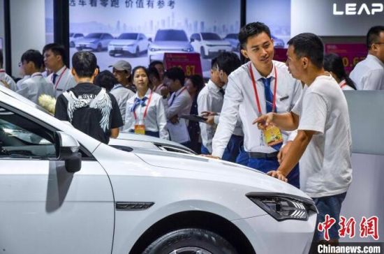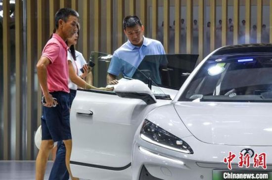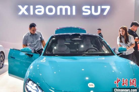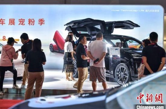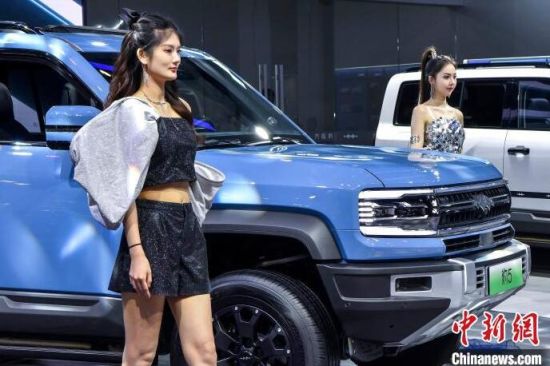 9月13日,海南?,車模助陣海南金秋車展。當(dāng)日,因超強臺風(fēng)“摩羯”而兩度延期的2024海南金秋車展暨智能網(wǎng)聯(lián)新能源車展在?谂e行。作為臺風(fēng)災(zāi)后海南的首場車展,本次展出面積達5萬平方米,共有近百個汽車品牌參展,其中新能源車型占比70%。中新社記者 駱云飛 攝