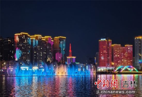 音樂噴泉位于延吉市延吉大橋和延西橋之間的布爾哈通河河面,全長(zhǎng)158米、寬12米,可噴射最高100米的水柱,還伴隨音樂表演“龍行天下”“擎天玉柱”“與時(shí)俱進(jìn)”“辮子舞”“花開富貴”“千手觀音”“彩虹高掛”等多種水舞形態(tài),造型豐富,觀賞性極強(qiáng)!八栊恪迸c周圍環(huán)境融為一體,充分展現(xiàn)延吉的民族特色和文明城市形象,為市民和游客提供精彩的視覺盛宴。
