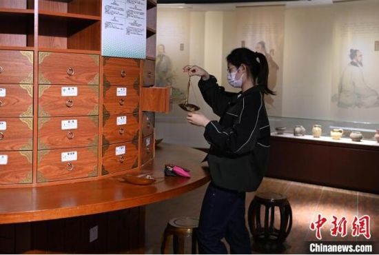 民眾在體驗(yàn)按方抓藥的過程!埇 攝