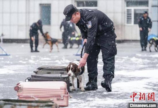 訓(xùn)導(dǎo)員和警犬“龍儲”在進(jìn)行緝毒搜爆訓(xùn)練。雖然史賓格犬“龍儲”身形不大,但它憑借著靈敏的嗅覺和優(yōu)秀的搜索能力,圓滿完成了一次又一次的任務(wù)和挑戰(zhàn)。袁睿 攝
