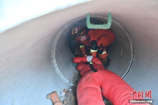 圖為救援隊(duì)員進(jìn)行狹小空間營(yíng)救訓(xùn)練。張瑤 攝