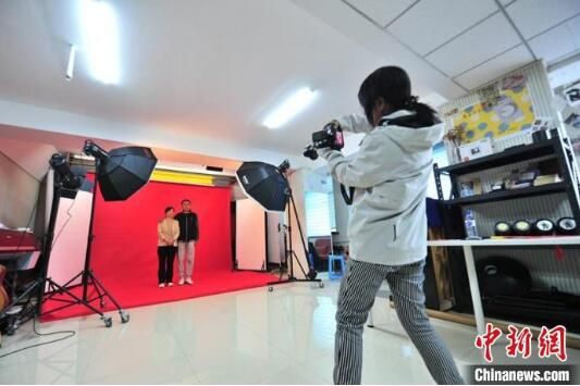 市民正在拍攝家庭照。市民正在拍攝家庭照。一對拍照的姐妹相擁而笑。攝影師在為市民設(shè)計(jì)造型。攝影師在為市民設(shè)計(jì)造型。