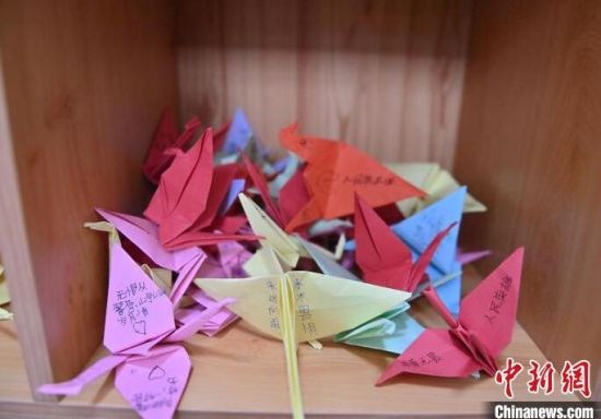 這些千紙鶴是轄區(qū)學(xué)生們送來的禮物,每個(gè)千紙鶴上面都有一句祝福的話,讓“木蘭警務(wù)團(tuán)”的女警們十分感動(dòng)!埇 攝