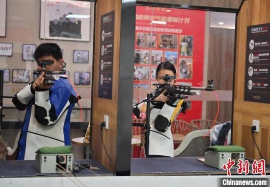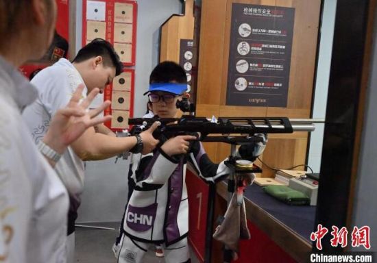 7月19日,在吉林省長春市一家氣槍訓練基地,學生們在進行據(jù)槍訓練。正值暑期,該氣槍訓練基地吸引不少青少年體驗射擊運動。(中新社記者 張瑤/攝)