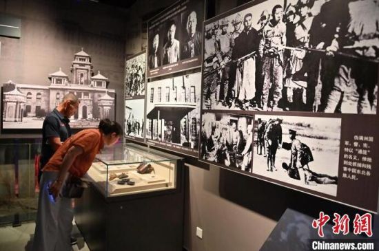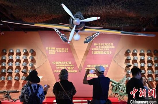 8月15日,吉林長春,民眾在偽滿皇宮博物院東北淪陷史陳列館參觀。當天,偽滿皇宮博物院舉辦紀念東北光復79周年特別活動,社會各界人士自發(fā)前往參加,重溫歷史、表達對先烈的追思之情。中新社記者 張瑤 攝