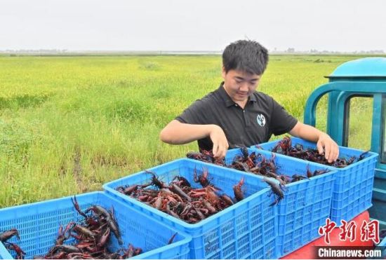 8月22日,在吉林省伊通縣三聯(lián)水庫(kù)灌區(qū)的小龍蝦苗培育基地,工作人員在展示小龍蝦。該基地科研團(tuán)隊(duì)在成功培育出了適應(yīng)北方寒地環(huán)境小龍蝦苗的同時(shí),還創(chuàng)新探索出稻田養(yǎng)殖蝦蟹新模式,通過(guò)生態(tài)良性循環(huán)提升稻米品質(zhì),也能更好地保護(hù)和利用黑土地。中新社記者 張瑤 攝