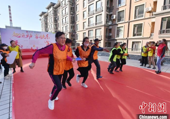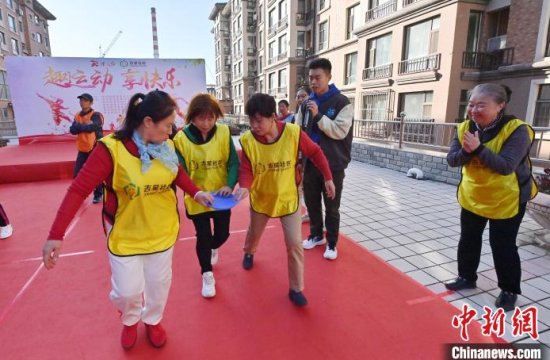 10月11日,在長春市吉星社區(qū),近百名老年人參加重陽節(jié)趣味運(yùn)動會。中新社記者 張瑤 攝