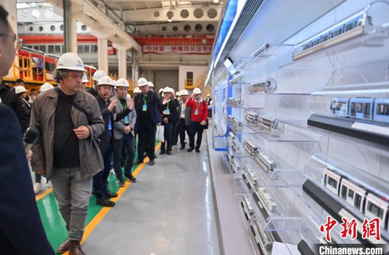 10月14日,吉林長(zhǎng)春,外賓在中車長(zhǎng)客體驗(yàn)地鐵列車。當(dāng)天,50多個(gè)國(guó)家的200多名政黨領(lǐng)導(dǎo)人、部分外國(guó)駐華使節(jié)和外國(guó)在華工商界代表等到訪吉林長(zhǎng)春,赴中國(guó)一汽、長(zhǎng)光衛(wèi)星、中車長(zhǎng)客等科技企業(yè)參觀,點(diǎn)贊制造業(yè)尋求合作機(jī)會(huì)。中新社記者 張瑤 攝