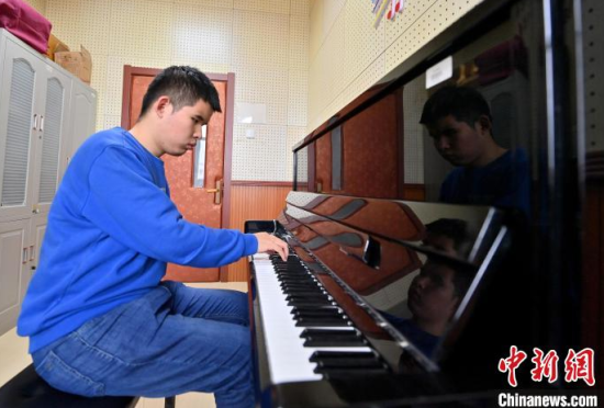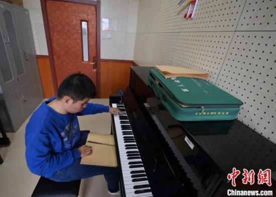 10月21日,吉林長(zhǎng)春,袁浩然在直播。2004年出生的袁浩然是長(zhǎng)春大學(xué)特教學(xué)院鋼琴表演專(zhuān)業(yè)的學(xué)生,雖然患有先天視力障礙,但他卻用音樂(lè)詮釋人生,歌頌美好生活。他將自己的作品傳到網(wǎng)上,獲得了550.4萬(wàn)的點(diǎn)贊量。袁浩然說(shuō),他要用熱愛(ài)的音樂(lè),為大家傳遞溫暖和力量。中新社記者 張瑤 攝