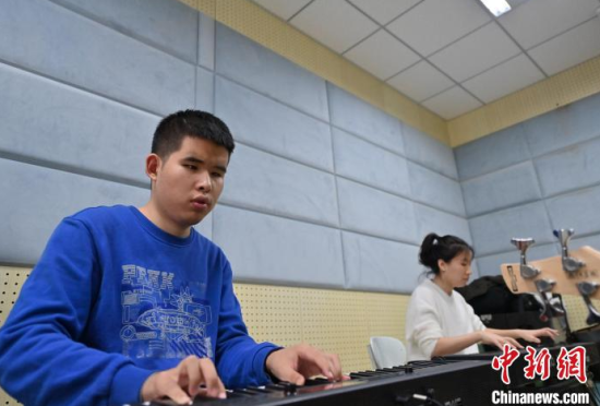 11月14日,吉林長春,“逐暗逐光”樂隊成員在交流排練細節(jié)。長春大學特教學院有一支名叫“逐暗逐光”的樂隊,樂隊成員都是視障學生。他們因音樂相聚在一起,用音樂去驅(qū)逐黑暗追逐光明。中新社記者 張瑤 攝