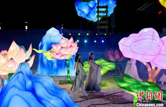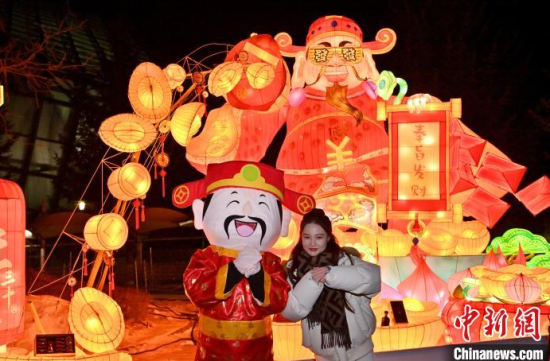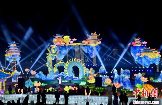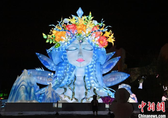 2025年1月1日晚,游客在位于吉林長春的長影世紀城欣賞花燈。當天,長影世紀城內超百組炫彩花燈同時點亮,營造出一個夢幻般的璀璨世界,為新年的到來增添喜慶氣氛。中新社記者 張瑤 攝