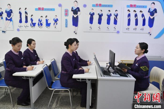 1月7日,吉林長(zhǎng)春,“動(dòng)姐”在進(jìn)行安全知識(shí)培訓(xùn)。春運(yùn)臨近,為提升服務(wù)品質(zhì),沈陽(yáng)局集團(tuán)公司長(zhǎng)春客運(yùn)段動(dòng)車(chē)一隊(duì)的乘務(wù)員們利用業(yè)余時(shí)間開(kāi)展基礎(chǔ)禮儀、職業(yè)形象、服務(wù)技巧等內(nèi)容的培訓(xùn)。中新社記者 張瑤 攝