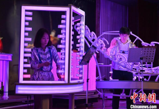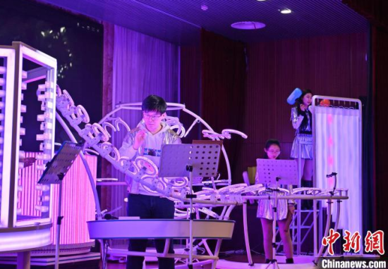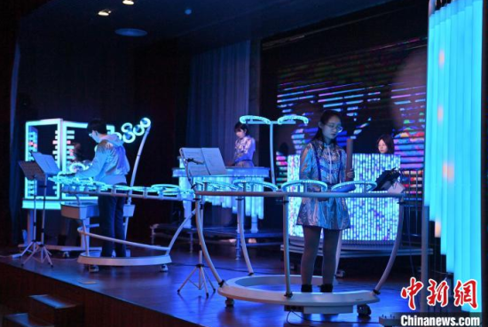 2月22日,在長(zhǎng)春中國(guó)光學(xué)科學(xué)技術(shù)館,小朋友在體驗(yàn)光學(xué)樂器。當(dāng)天,由該館工作人員組成的OMI樂隊(duì)為觀眾獻(xiàn)上了一場(chǎng)精彩演出,他們利用由傳感器和其他光學(xué)元件制成的光學(xué)樂器,結(jié)合專業(yè)的電子音源,通過用手或鼓棒遮擋光束來產(chǎn)生電信號(hào),觸發(fā)音源,發(fā)出聲音和變換顏色。這種演奏方式仿佛是通過敲擊空氣來演繹美妙的樂曲。中新社記者 張瑤 攝