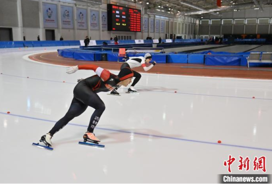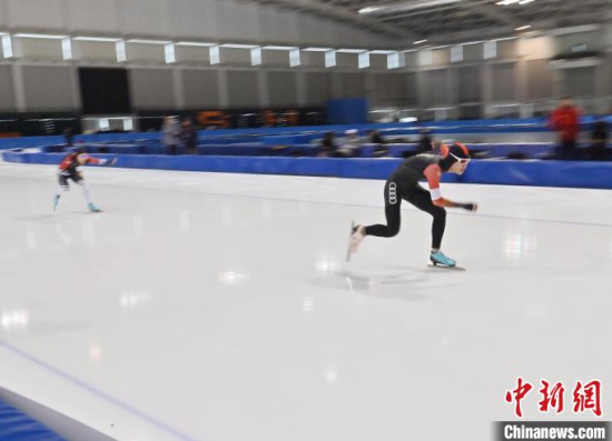 3月13日,2024-2025賽季全國速度滑冰青年錦標賽在吉林省速滑館開賽,來自全國各地200余名運動員參賽。圖為運動員在激烈比拼。中新社記者 張瑤 攝