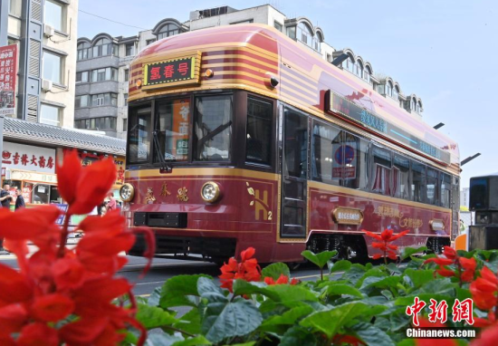 6月4日,吉林長春,市民在氫能源文旅專列旁拍照。該專列由中車長客研制,以歷史文化街區(qū)新民大街建筑群為設(shè)計(jì)靈感,車內(nèi)君子蘭花海主題內(nèi)飾與復(fù)古留聲機(jī)相映成趣。列車采用三級(jí)安全防護(hù)氫能系統(tǒng),單次加氫續(xù)航320公里。中新社記者 張瑤 攝