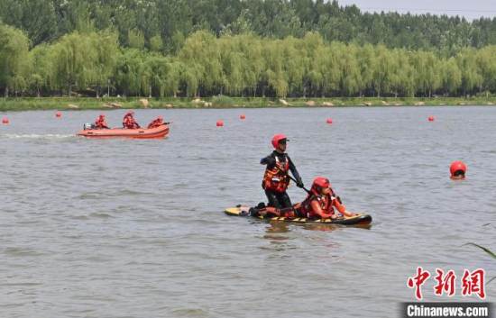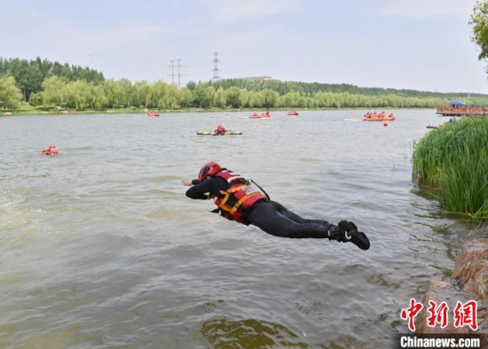 6月18日,長春市消防救援支隊開展水域救援實戰(zhàn)訓(xùn)演。此次訓(xùn)演按照不同救援場景需要,設(shè)置了繩索救援、潛水救援、入水救援、岸邊救援和IRB實操等5個訓(xùn)練區(qū)域32項訓(xùn)練科目。中新社記者 張瑤 攝