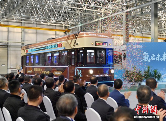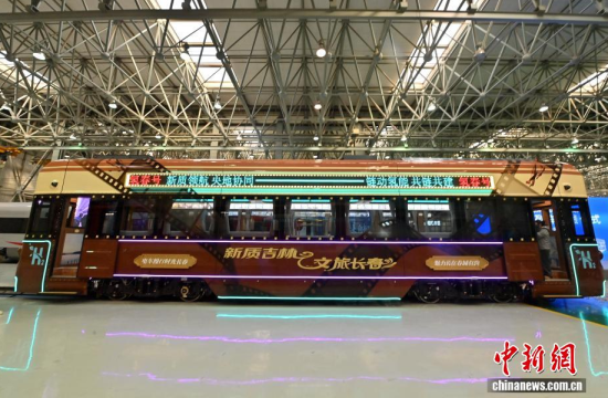 10月16日,中國(guó)首列氫能文旅列車“氫春號(hào)”在吉林長(zhǎng)春正式下線。該列車由中車長(zhǎng)春軌道客車股份有限公司研制,采用氫能動(dòng)力系統(tǒng),無(wú)需接觸網(wǎng)供電,運(yùn)行時(shí)的唯一產(chǎn)物是水,真正實(shí)現(xiàn)了零碳排放。列車支持1至6節(jié)的靈活編組,能夠滿足城市通勤與文化旅游等多元化線路需求!皻浯禾(hào)”的亮相,意味著氫能在軌道交通場(chǎng)景下的商業(yè)化從實(shí)驗(yàn)室走向應(yīng)用。中新社記者 張瑤 攝