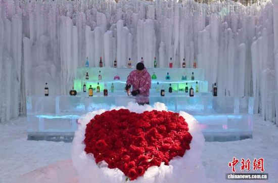 2月3日,位于長春冰川幻境冰雪樂園內(nèi)的一座由冰瀑打造而成的特色“酒吧”,吸引了大量游客前來打卡體驗。酒吧內(nèi)部以冰雪為主題,晶瑩剔透的冰沙發(fā)與冰吧臺相互映襯,營造出夢幻般的冰雪世界氛圍。中新社記者 張瑤 攝