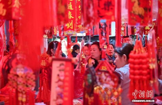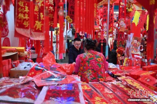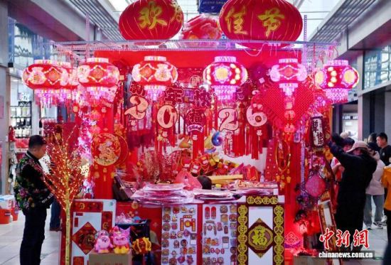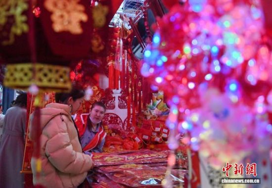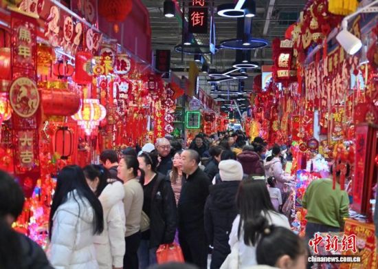 2月12日,長春一家商場的年貨區(qū)年味十足。隨著農歷馬年春節(jié)的臨近,各類生肖飾品、年節(jié)掛飾銷售持續(xù)升溫,琳瑯滿目的新春飾品吸引民眾駐足挑選。中新社記者 張瑤 攝