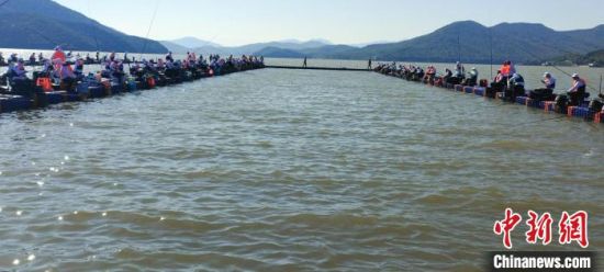 吉林市松花湖管理局漁業(yè)管理處處長穆超介紹,比賽時長6個小時,3小時換一次釣位。湖面下放置網(wǎng)箱,魚竿限長5.4米,非?简炦x手使用餌料、控魚等技巧。