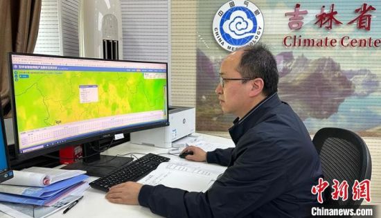 3月23日,吉林省氣象臺(tái)臺(tái)長(zhǎng)陳長(zhǎng)勝利用AI輔助預(yù)報(bào)工作。 郭佳 攝