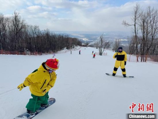 家長(zhǎng)帶領(lǐng)兒童在吉林市雪場(chǎng)滑雪!±钍| 攝