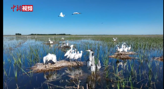 進(jìn)入6月,位于吉林省鎮(zhèn)賚縣的吉林莫莫格國家級(jí)自然保護(hù)區(qū)迎來了鳥類繁殖的高峰。東方白鸛、白琵鷺、蒼鷺、草鷺、須浮鷗、白骨頂雞、灰雁、紅頭潛鴨等鳥類都在忙著“帶娃”。據(jù)介紹,吉林莫莫格有298種鳥類,其中國家一級(jí)保護(hù)鳥類22種,國家二級(jí)保護(hù)鳥類49種。(潘晟昱 制作 郭佳)