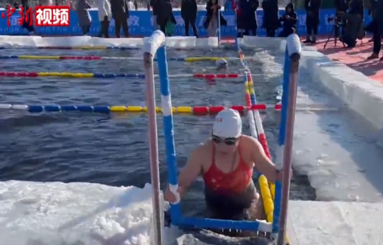 吉林敦化:逾800名中外“泳士”暢游冰湖